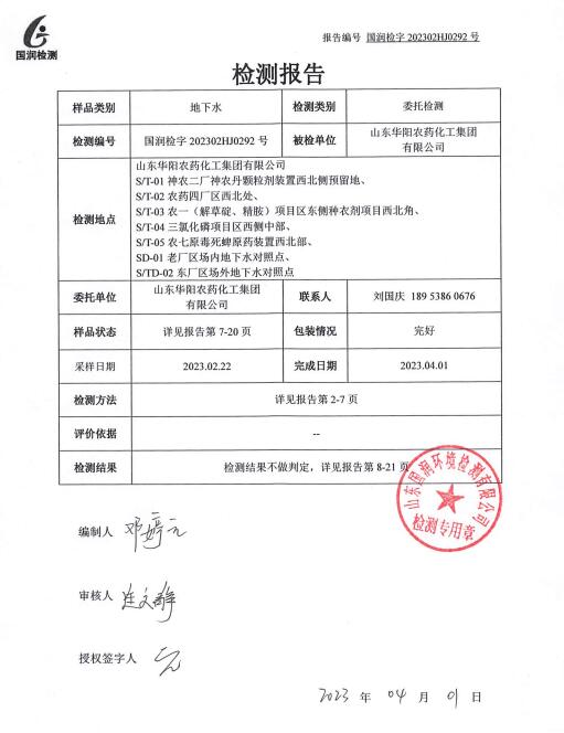 公司動(dòng)態(tài) 首頁 > 華陽新聞 > 公司動(dòng)態(tài) > 列表 山東華陽農(nóng)藥化工集團(tuán)有限公司地下水檢測報(bào)告 附件:山東華陽農(nóng)藥化工集團(tuán)有限公司地下水檢測報(bào)告.pdf